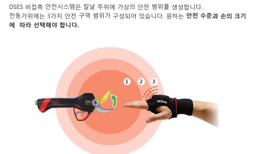 (필요시 안전 단계를 바꿔가면서 사용합니다. 송신기의 거리에 따라서 전동가위가 멈추는 범위를 말합니다.)