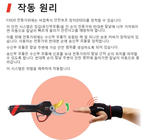 비접촉 안전시스템을 제대로 사용하기 위해서는 송신부의 장착 및 전원부 LED를 볼 수 있는 전용 장갑을 사용하시기를 추천 드립니다.
